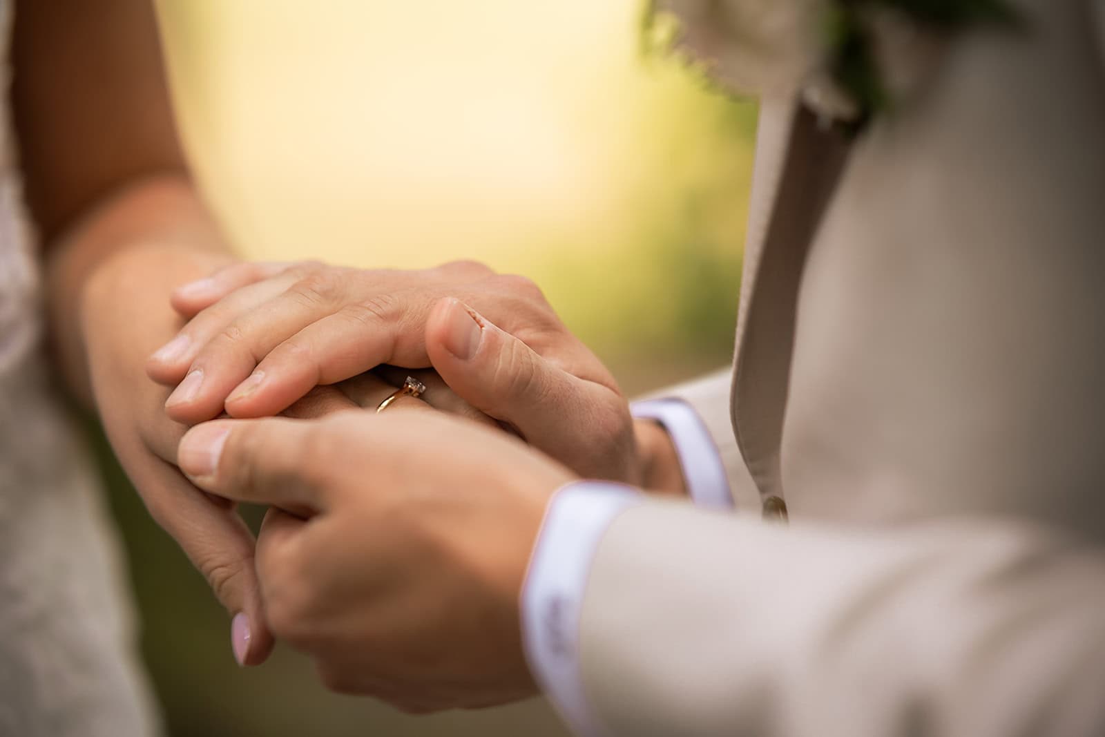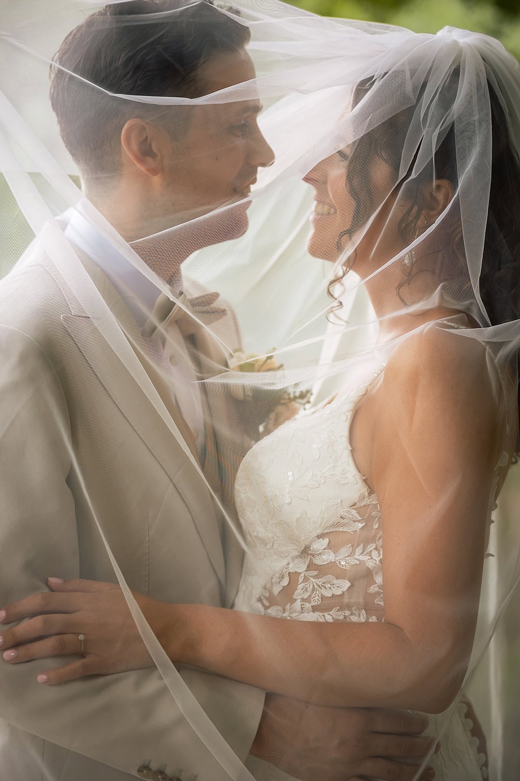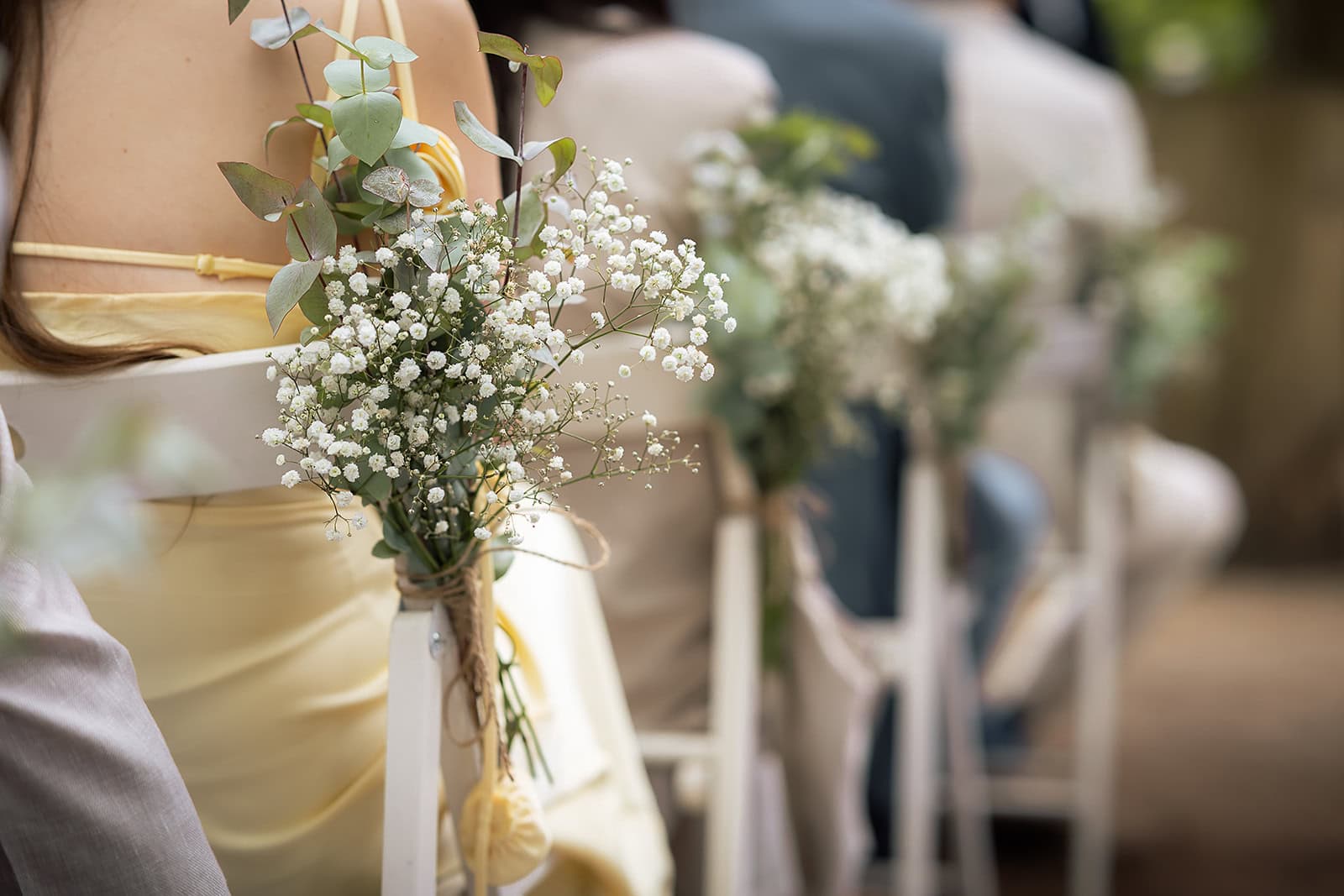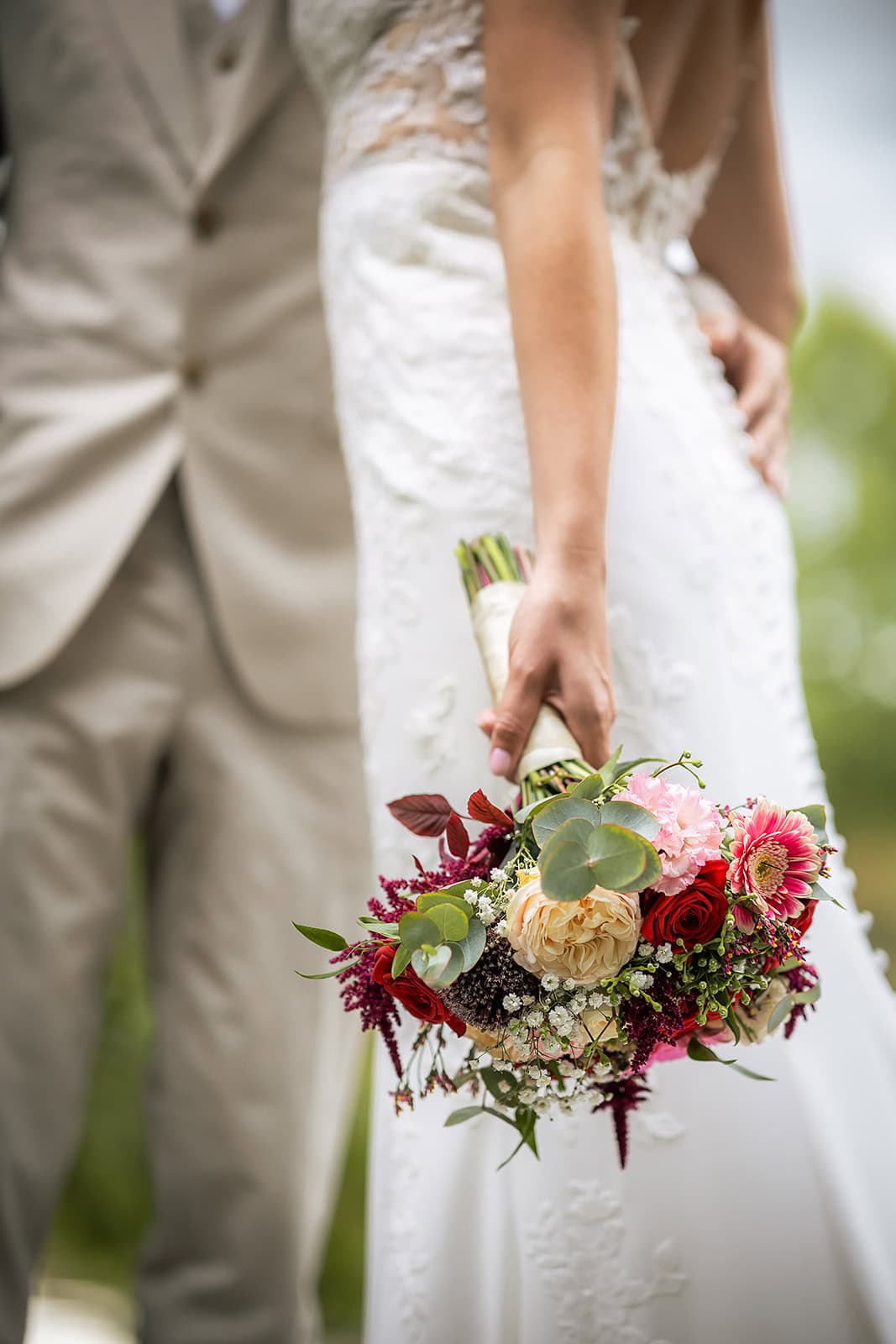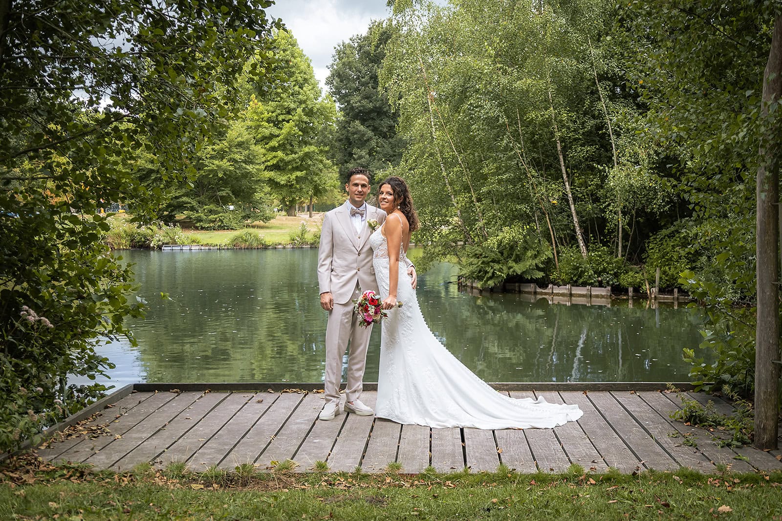 Op locatie startte ik met foto’s van de omgeving. Langs het pad naar de ceremonie stonden grote prints van hun door mij gemaakte favoriete foto’s. Zo sfeervol en persoonlijk, ik hou daar echt van. Toen Debby en Robbert alles even hadden bekeken, gingen we samen met videograaf Elroy van Visuals by Elroy een rondje lopen voor de pre weddingshoot. Zijn video’s en mijn foto’s vormden samen een perfecte mix.