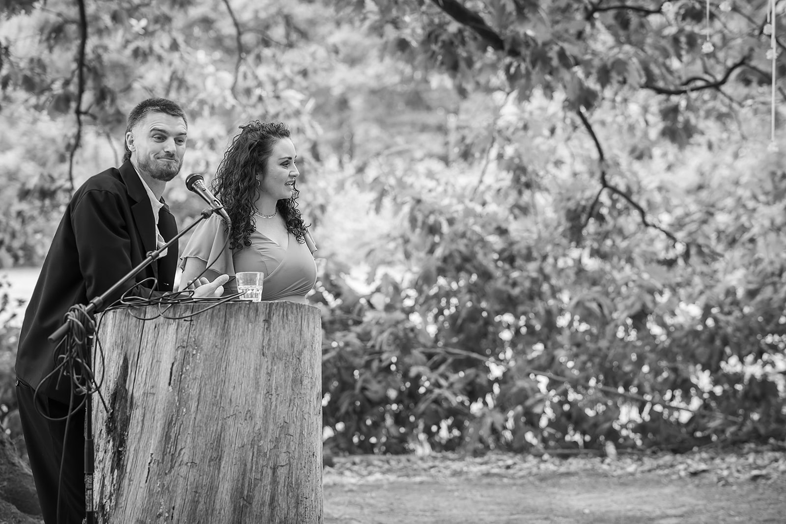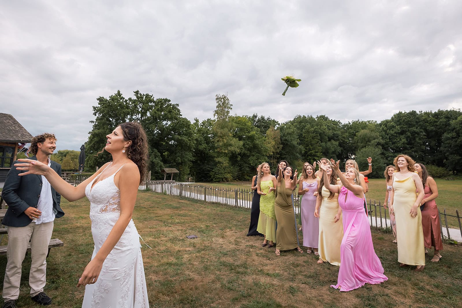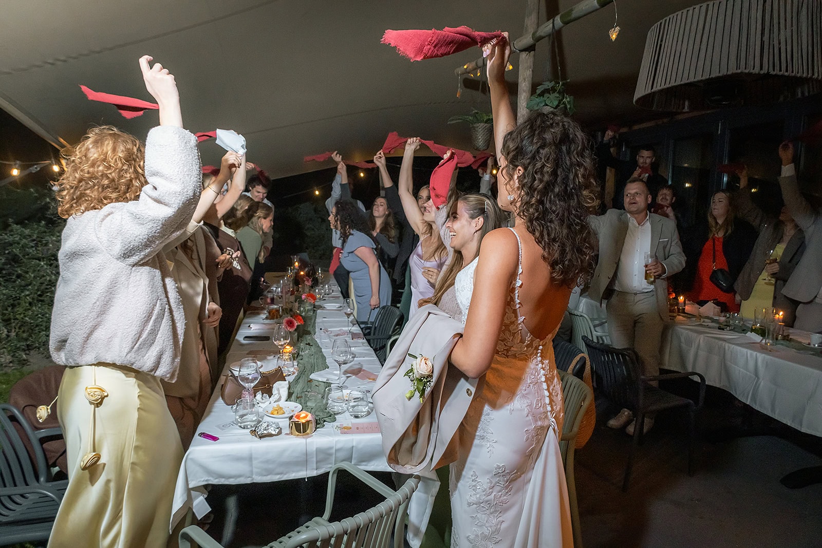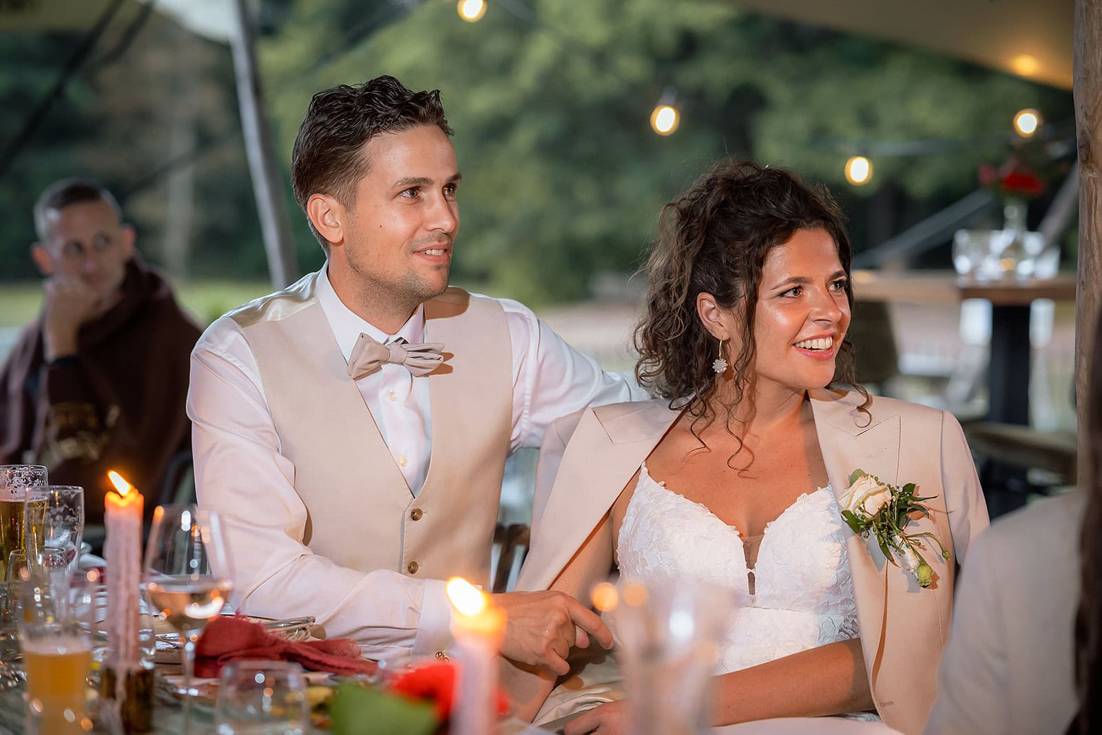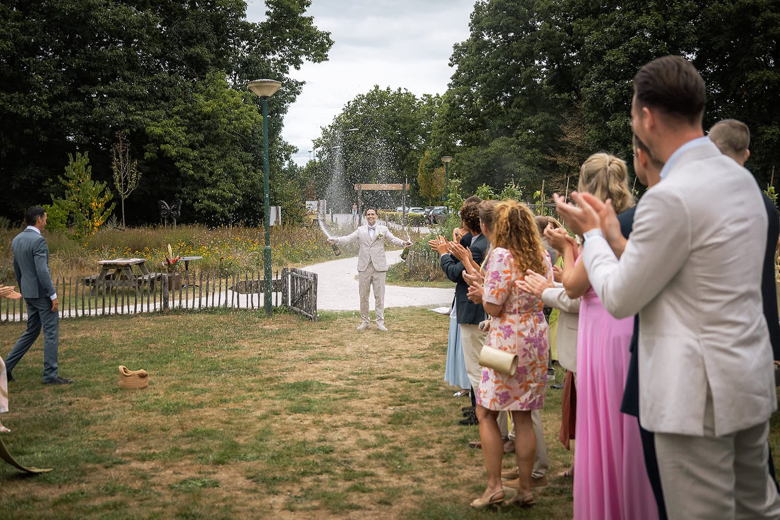 Na de ceremonie ging het moeiteloos over in een gezellige middag met taart, toast, spelletjes van het bruidspaar en mooie speeches. Een dag die precies liet zien waarom ik zo graag bruiloften fotografeer: echte momenten, pure emoties en mensen die genieten. We sloten de dag af met een sparkler send off tussen de sterretjes. Ik liet Debby en Robbert hun initialen in spiegelbeeld schrijven voor een van de laatste foto’s. Een speels en romantisch einde van een dag die voor mij voelde als een warm Brabants feestje.