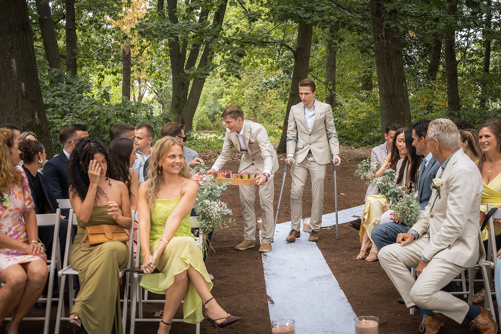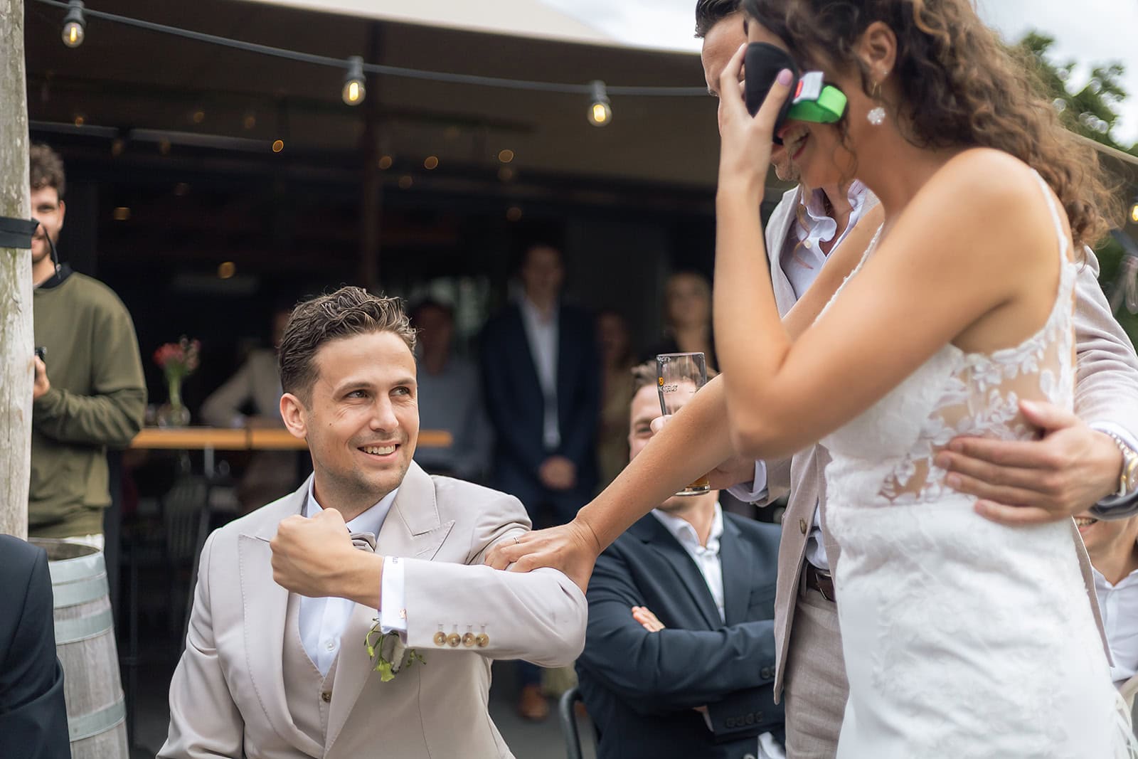 De ceremonie begon precies zoals je dat in Brabant verwacht: met shotjes om de spanning een beetje te breken. Ik bleef zelf braaf nuchter, want met dure camera’s en lenzen in mijn handen wil ik scherp blijven tot het einde van mijn uren. Maar de sfeer zat er meteen heerlijk in.