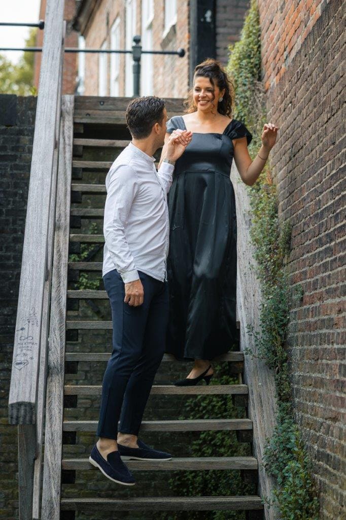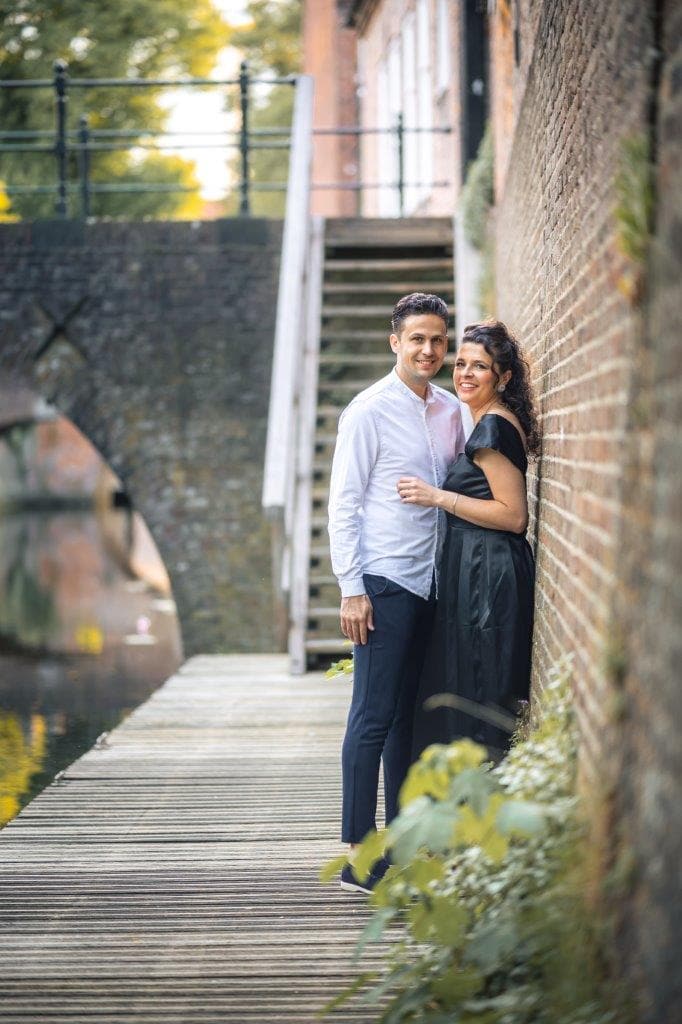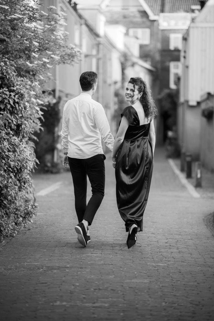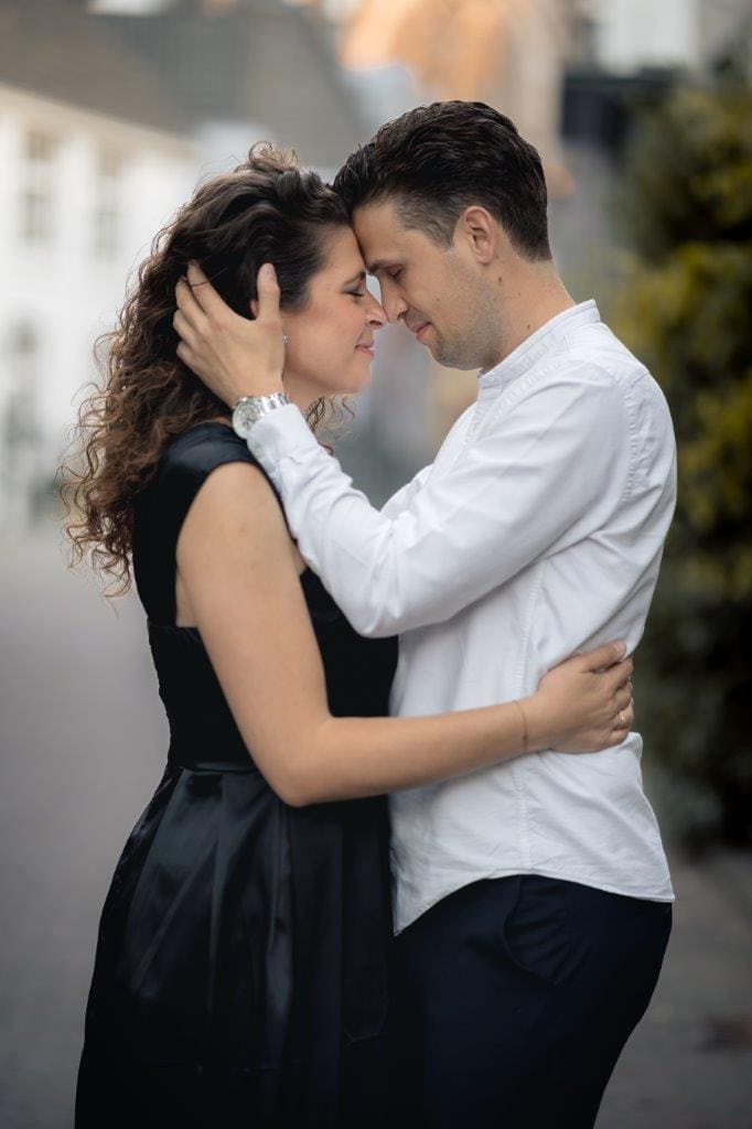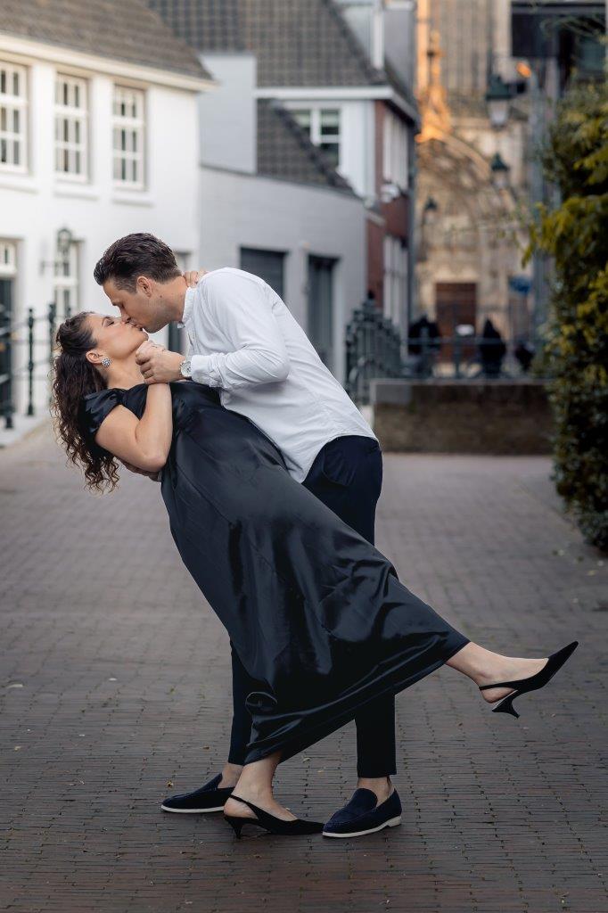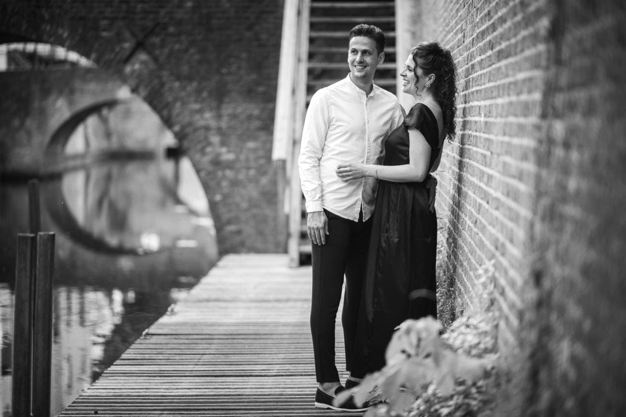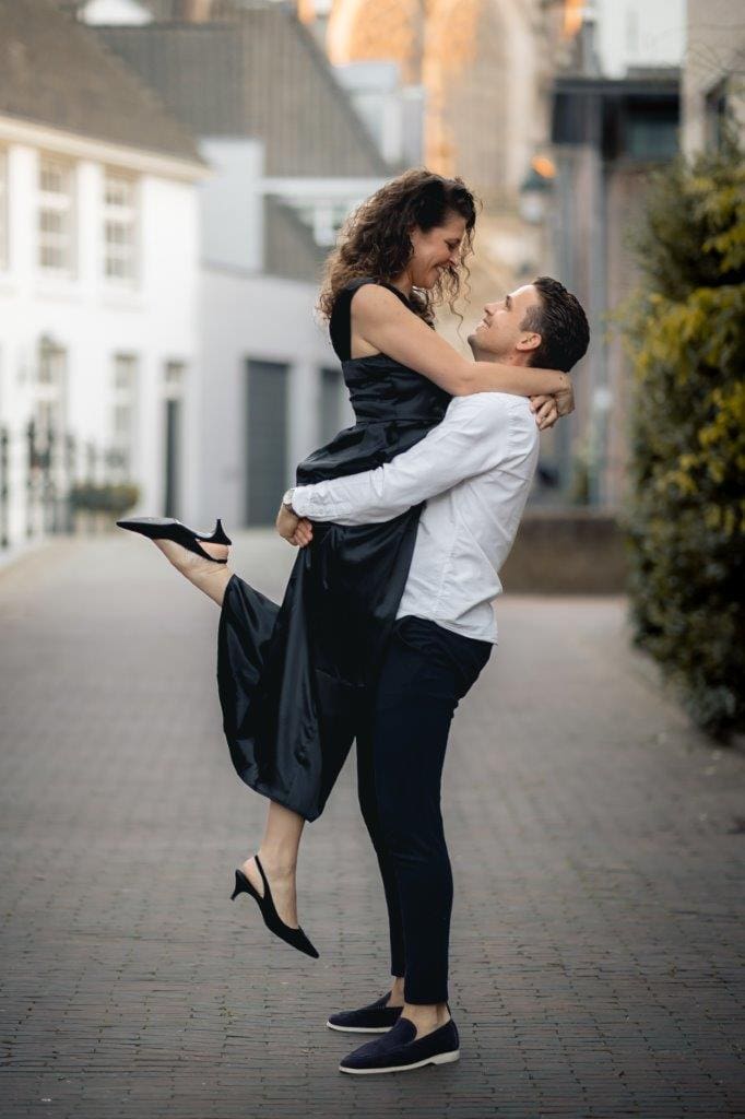 Wat ik zo leuk vind aan mijn werk als fotograaf, is dat ik op de mooiste plekken kom. Voor deze loveshoot met Debby en Robbert reisde ik af naar het sfeervolle Den Bosch – een stad die voor mij helemaal nieuw was. Na wat vooronderzoek ontdekte ik het charmante straatje ‘In Den Boerenmouw’, verscholen net achter de winkelstraat. Een echte verborgen parel! We namen uitgebreid de tijd om hier te fotograferen, en ik heb mijn best gedaan om de karakteristieke omgeving zo goed mogelijk in beeld te brengen.