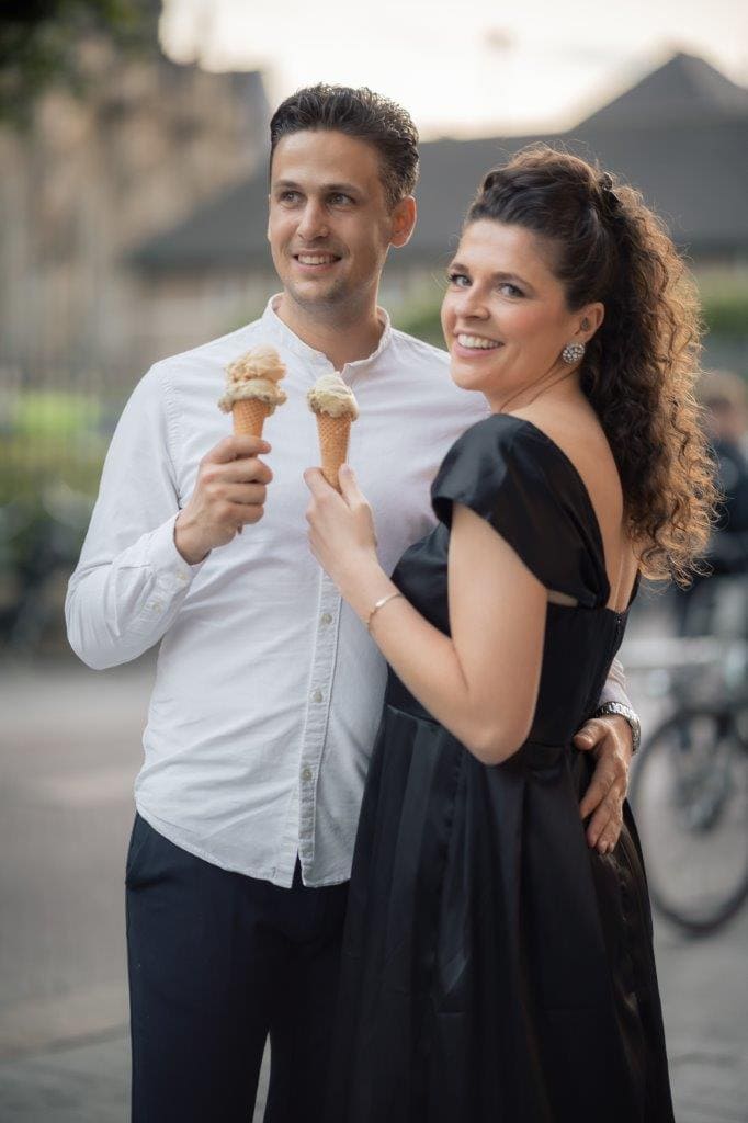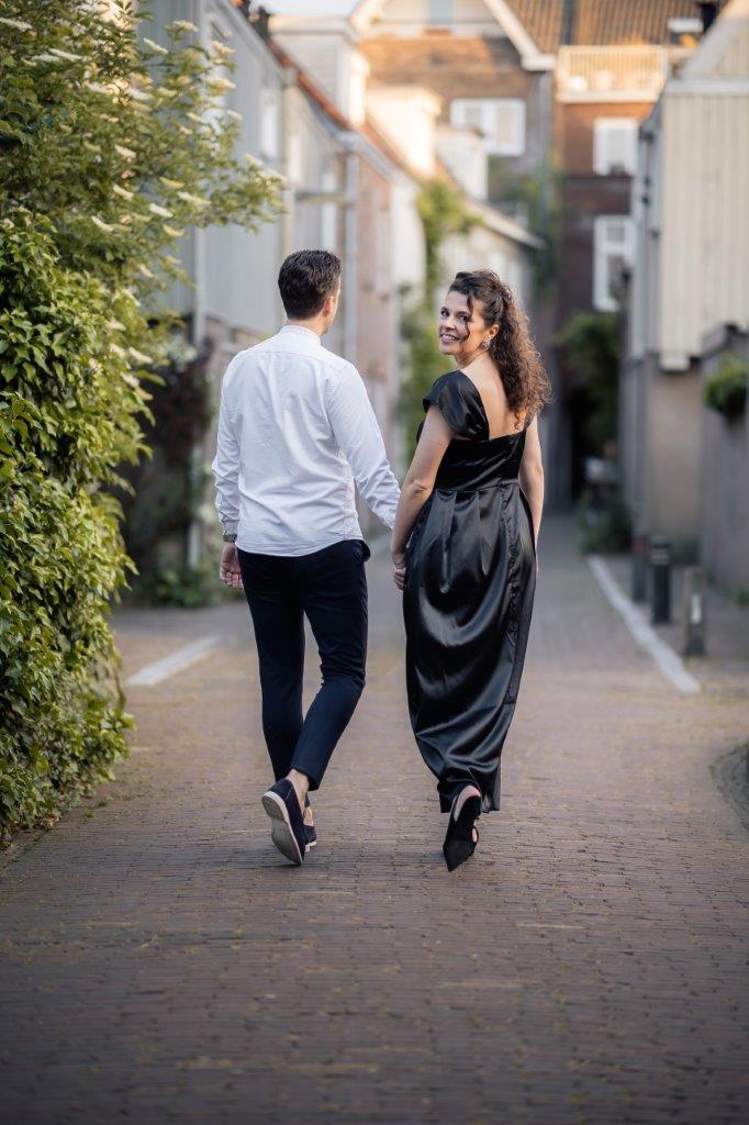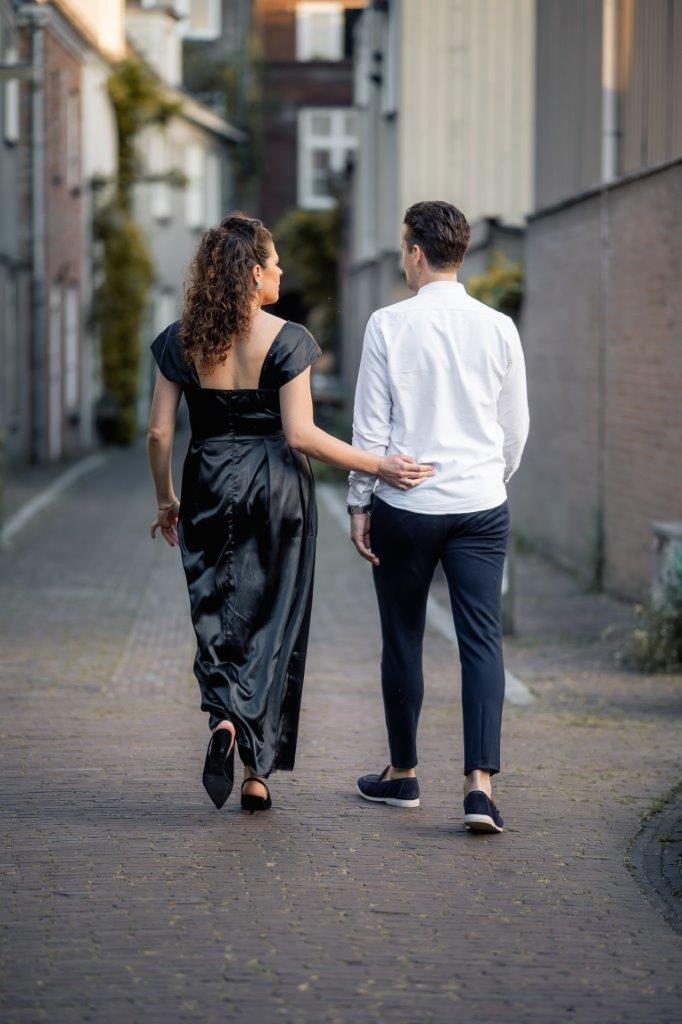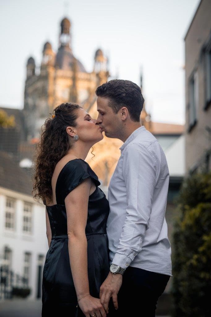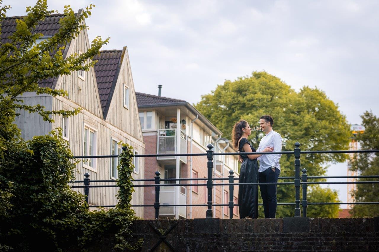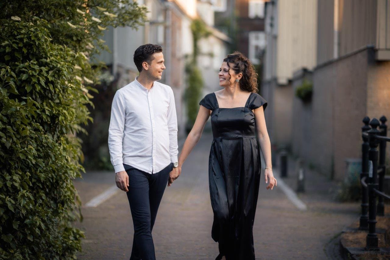 Wat ik zo leuk vind aan mijn werk als fotograaf, is dat ik op de mooiste plekken kom. Voor deze loveshoot met Debby en Robbert reisde ik af naar het sfeervolle Den Bosch – een stad die voor mij helemaal nieuw was. Na wat vooronderzoek ontdekte ik het charmante straatje ‘In Den Boerenmouw’, verscholen net achter de winkelstraat. Een echte verborgen parel! We namen uitgebreid de tijd om hier te fotograferen, en ik heb mijn best gedaan om de karakteristieke omgeving zo goed mogelijk in beeld te brengen.