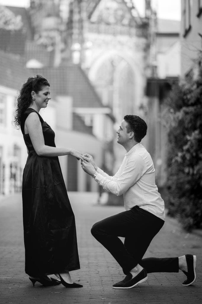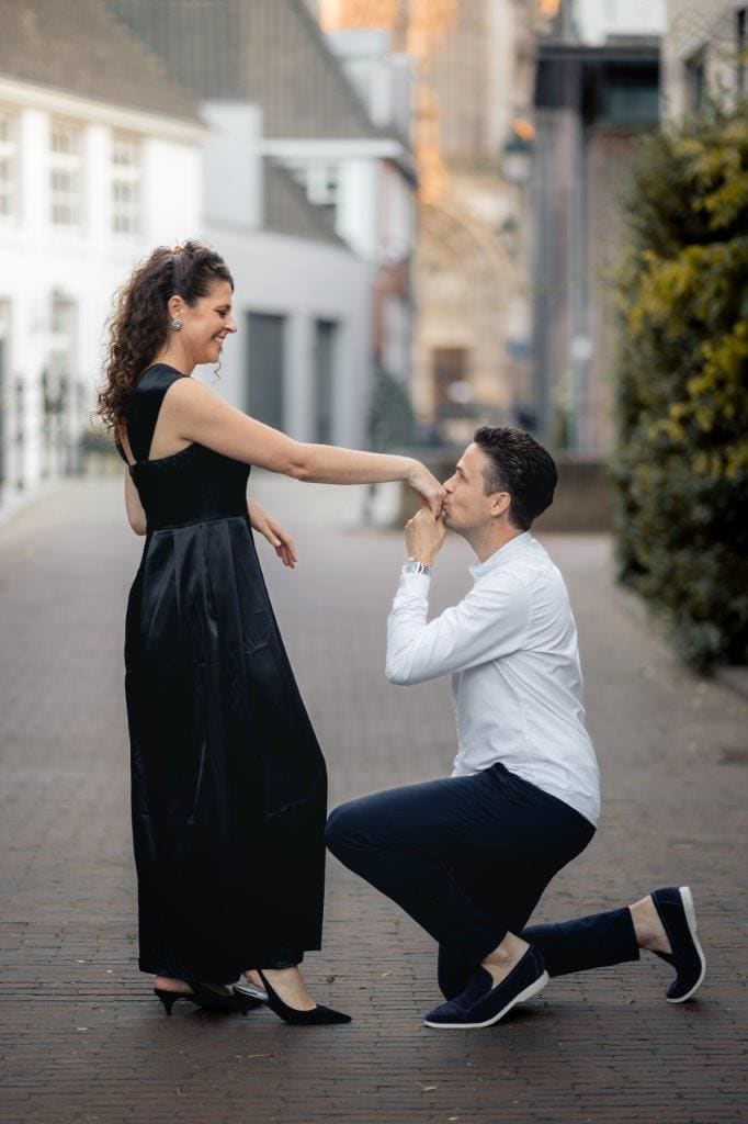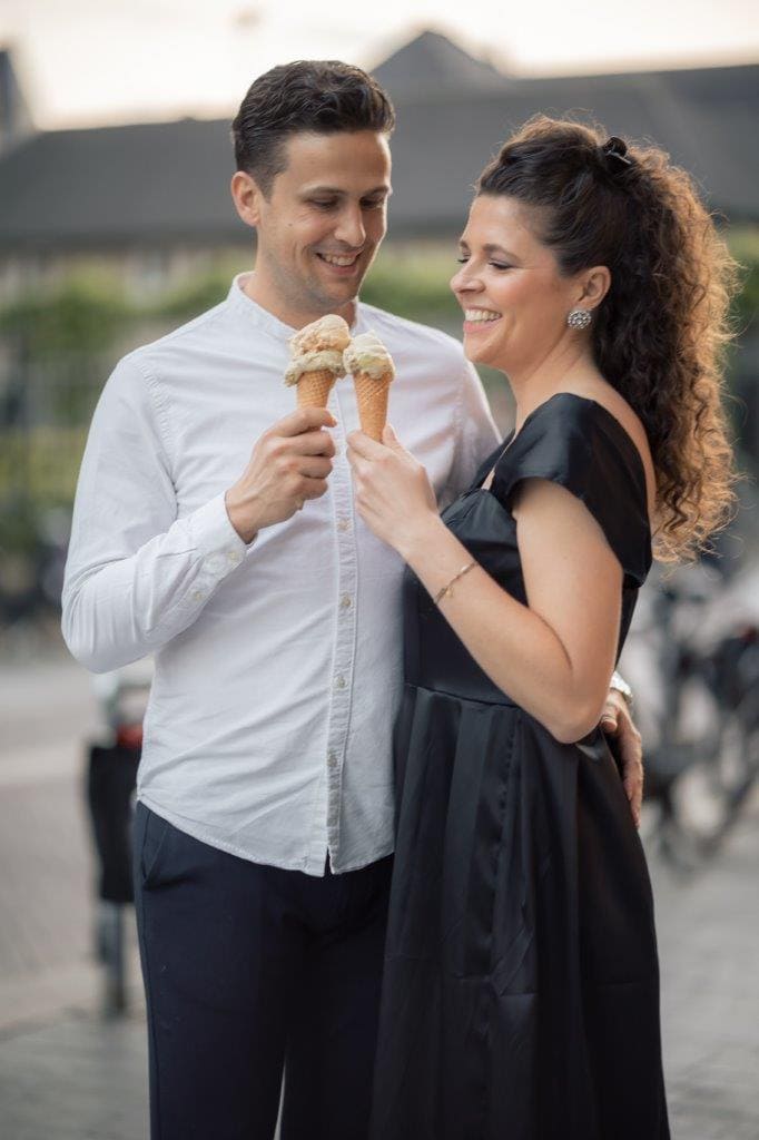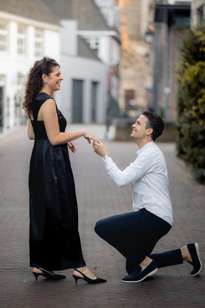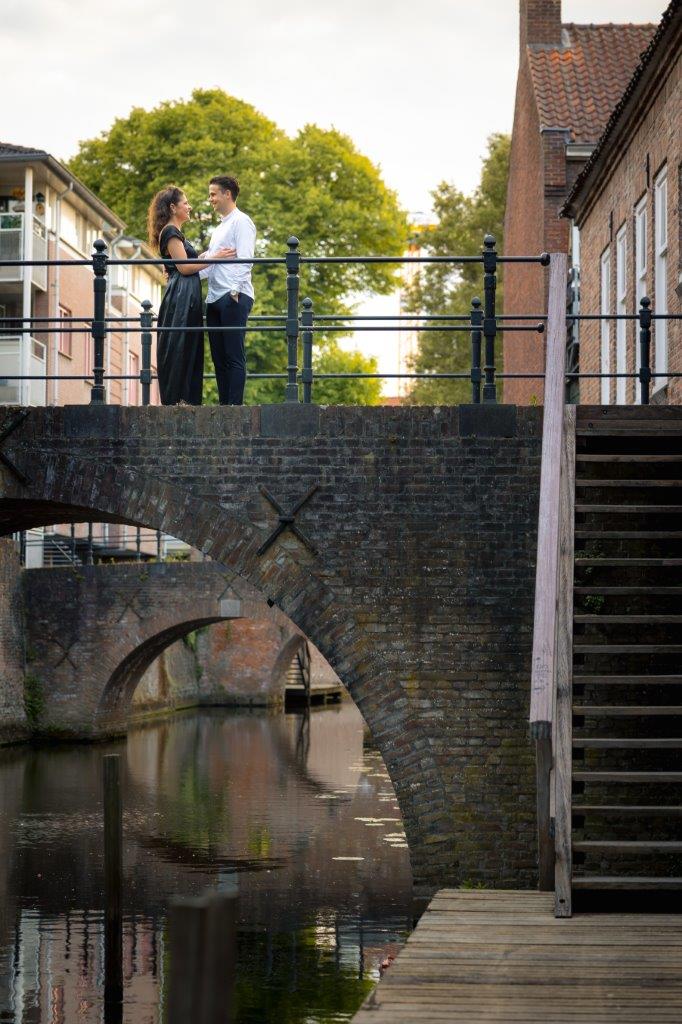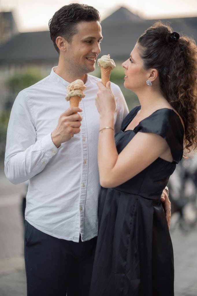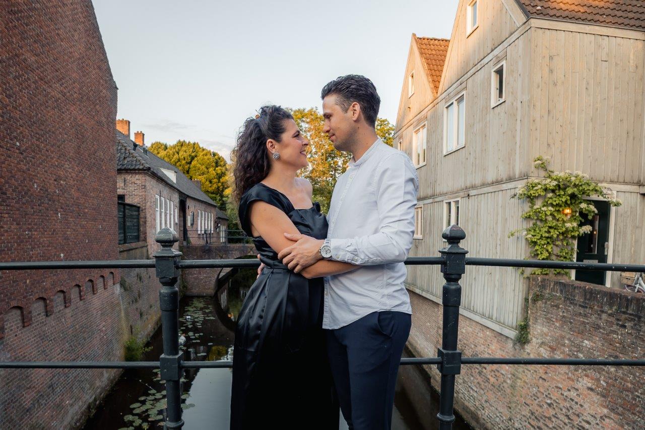 Wat ik zo leuk vind aan mijn werk als fotograaf, is dat ik op de mooiste plekken kom. Voor deze loveshoot met Debby en Robbert reisde ik af naar het sfeervolle Den Bosch – een stad die voor mij helemaal nieuw was. Na wat vooronderzoek ontdekte ik het charmante straatje ‘In Den Boerenmouw’, verscholen net achter de winkelstraat. Een echte verborgen parel! We namen uitgebreid de tijd om hier te fotograferen, en ik heb mijn best gedaan om de karakteristieke omgeving zo goed mogelijk in beeld te brengen.
