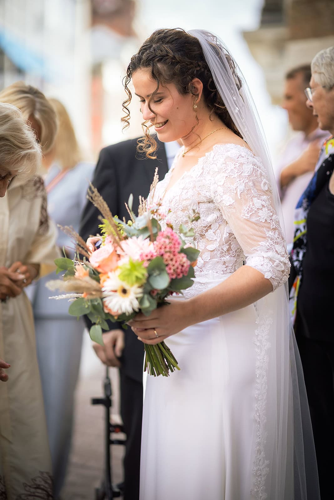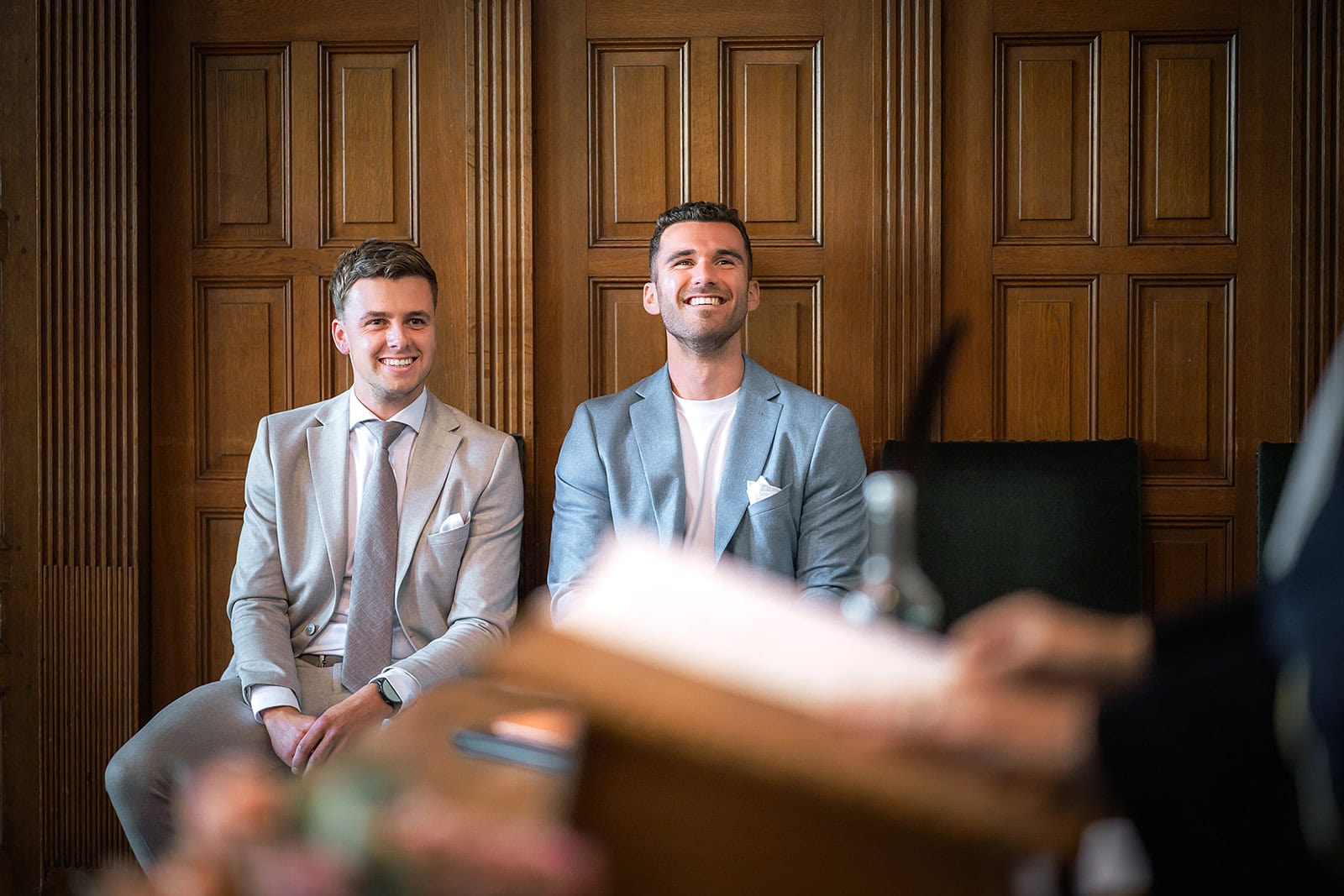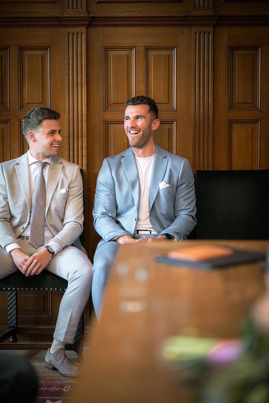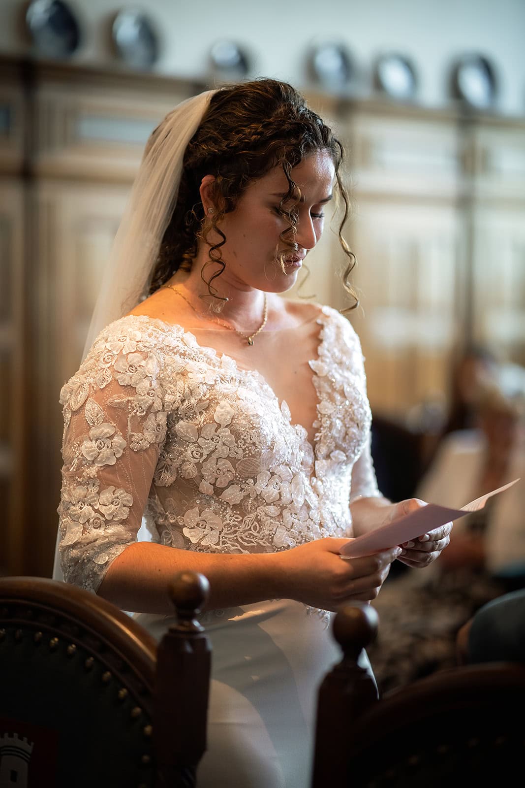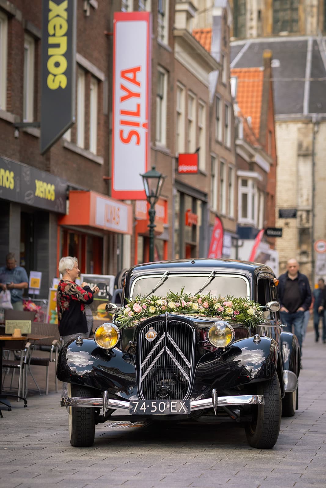 Daarna reden we naar het centrum van Alkmaar voor de ceremonie in het Stadhuis. Dit is een van de drukste plekken van de stad maar toch liep alles precies zoals gepland. In de prachtige zaal heb ik ieder moment vastgelegd tot in de kleinste details. Buiten maakten we vervolgens de groepsfoto’s op de trap van het Stadhuis.