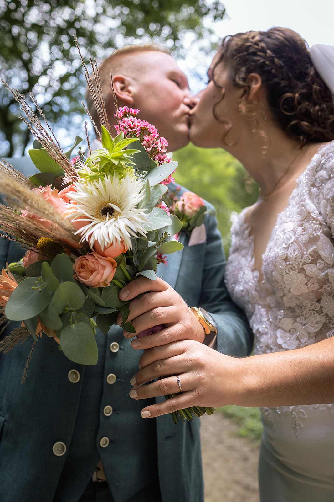 Na de ceremonie reden we door naar Geestmerambacht. Deze plek blijft elke keer weer een cadeautje. Voordat de gasten arriveerden maakten we samen een romantische loveshoot. De sfeer de natuur en de rust zorgden voor een reeks foto’s die echt tot de mooiste van de dag behoren.