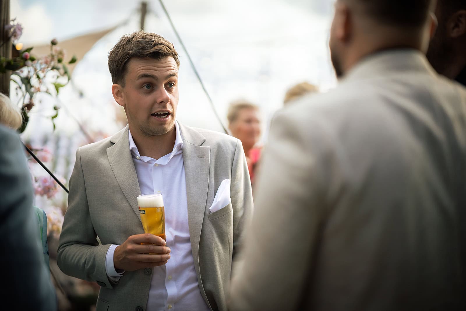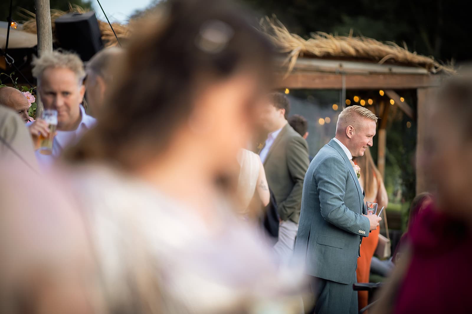 Toen de gasten binnen druppelden liep ik erheen om de sfeer vast te leggen gevolgd door een warm welkom voor het bruidspaar. Er werd genoten van speeches het fijne weer en het heerlijke eten dat werd verzorgd door de staf van El Chiringuito Geestmerambacht. Tijdens zonsondergang maakten we nog een korte extra shoot. Deze beelden zijn uiteindelijk de favorieten van het bruidspaar geworden en eentje hangt zelfs groot aan hun muur.